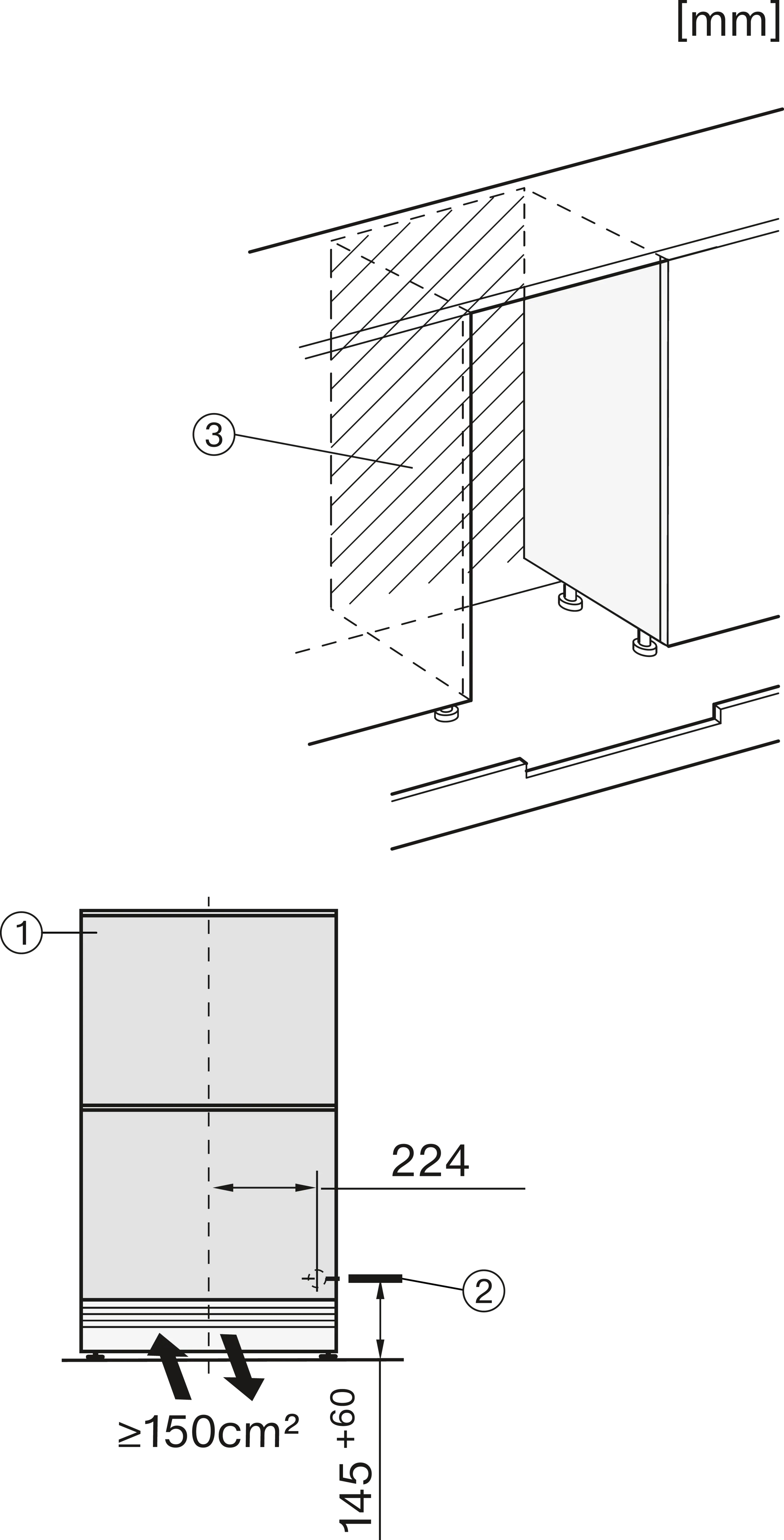 Установка встраиваемого бытового холодильника/морозильника
