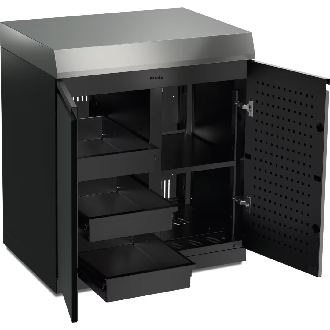 С системами хранения Miele процесс приготовления на открытом воздухе становится по-настоящему расслабляющим. Вам больше не нужно искать нужную лопатку в дальнем шкафу дома или беспокоиться о том, где безопасно разместить газовый баллон. Все необходимое находится под рукой, организовано с немецкой педантичностью и готово к сезону барбекю в любую минуту.